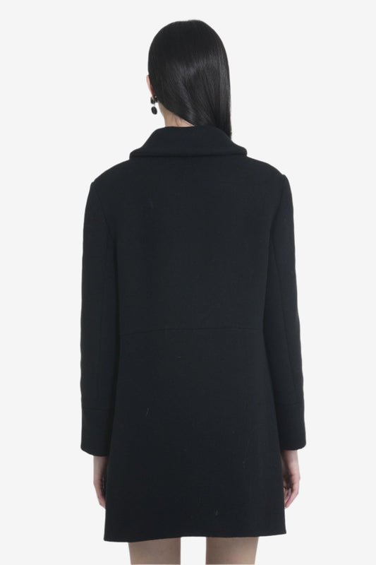 Women's elegant long black coat with high collar